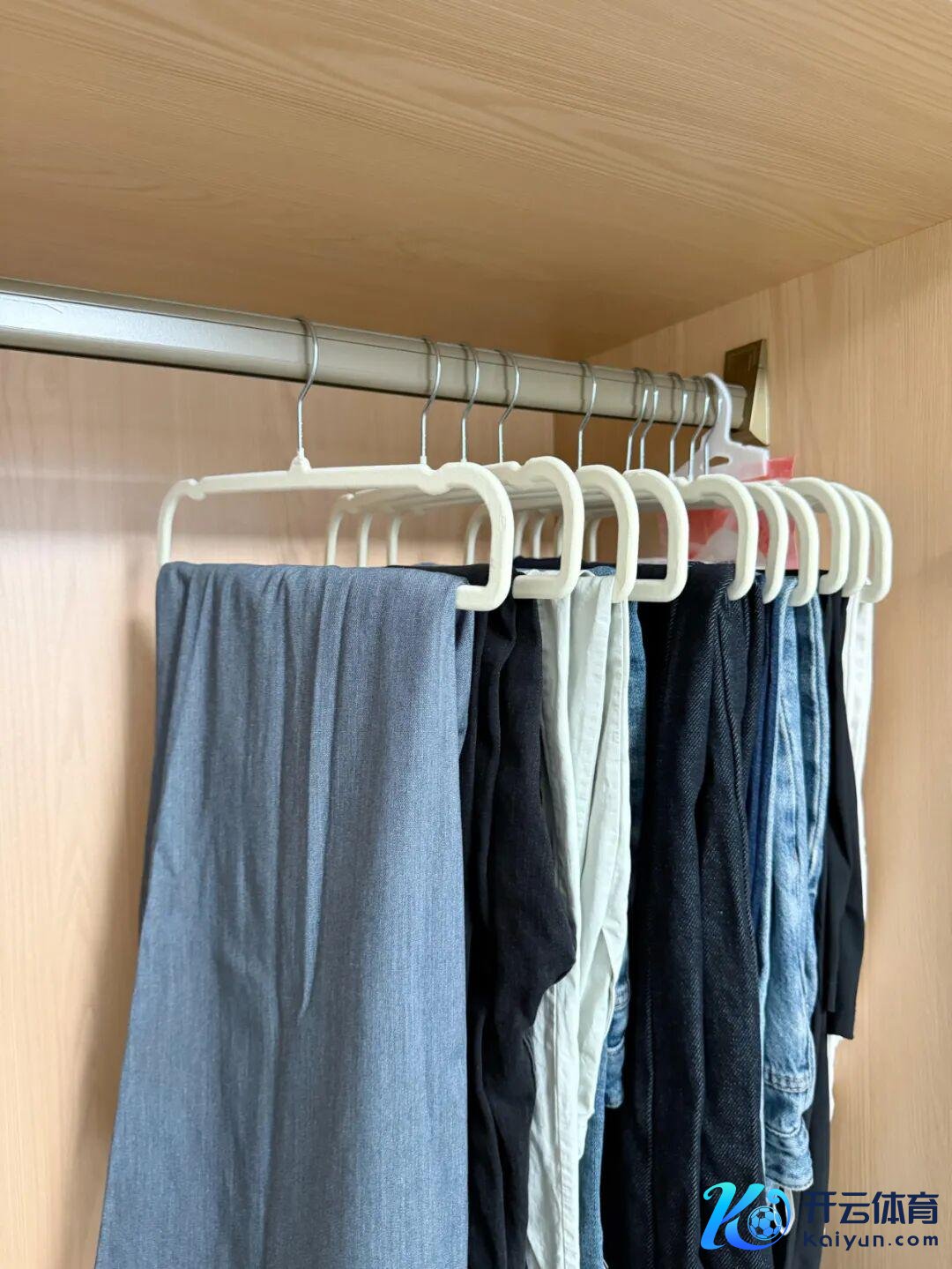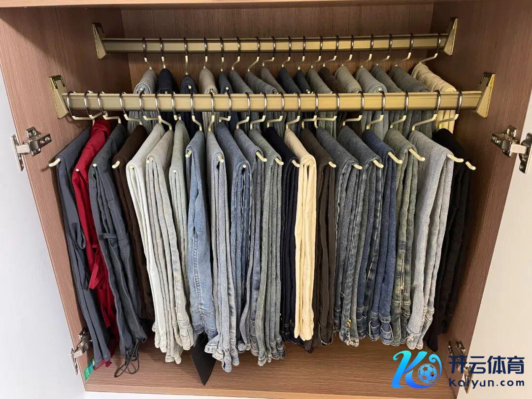 次第也很毛糙,即是接受波折错位的格局装配两根挂杆,里面挂换季的裤子,外面挂当季的裤子,既浅显了使用,又延伸了收纳。