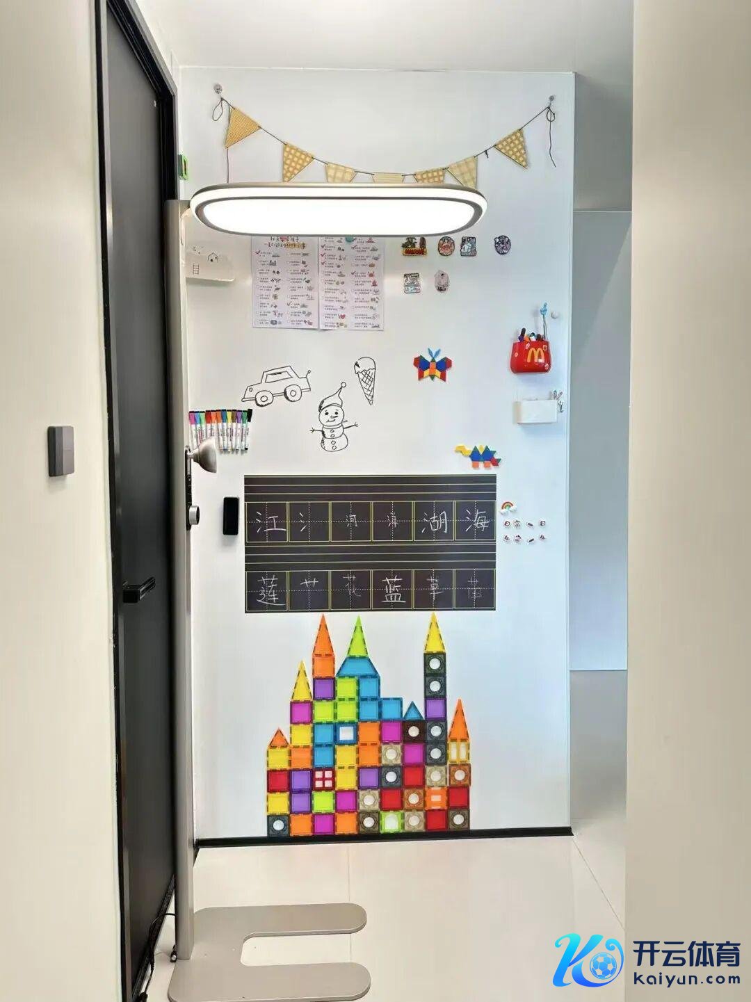 你还不错在搪瓷板下方装配几个收纳盒,专诚收纳孩子的玩物、文具以及平素小物,从小培养孩子物归原处的好民风。