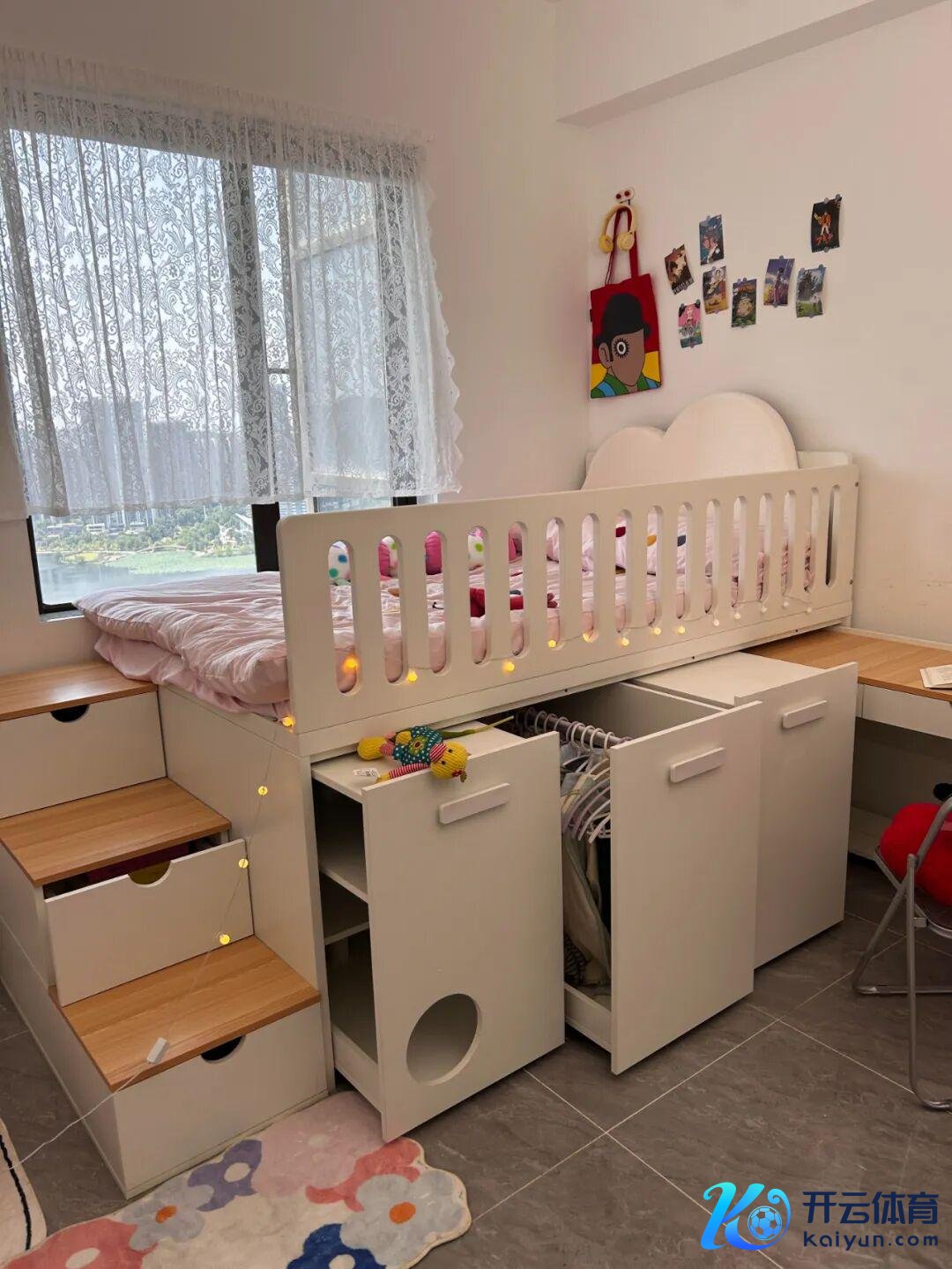 若想多给孩子一些步履空间,还不错将床筹算成“树屋”,上头睡觉,底下收纳、学习、步履,不仅十分理由,后期还不错天真洽商功能。