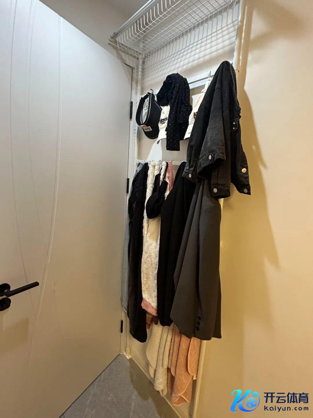 1)卧室的门后,不错装配一组顶天赶紧衣架,搭配上挂钩和夹子,脱下来的穿戴和帽子都不错挂上去。