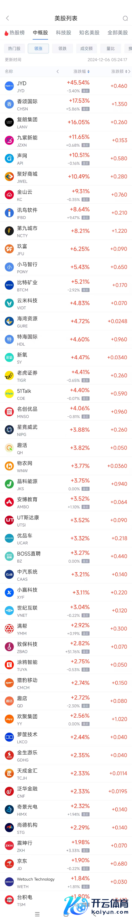 领涨中概股列表: