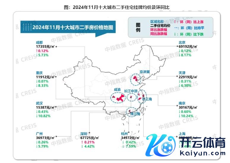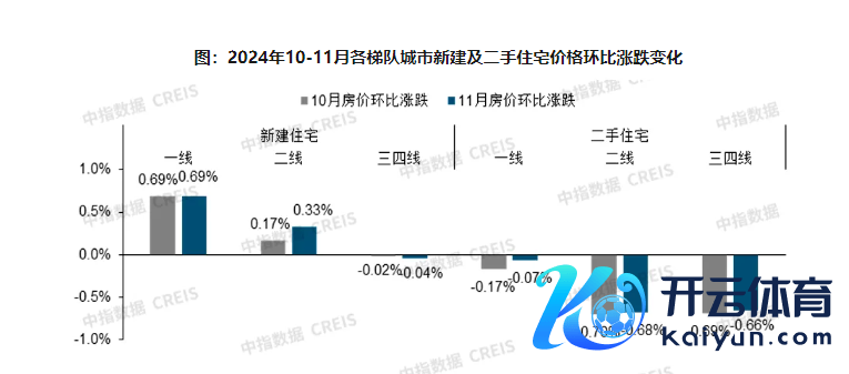 各梯队城市二手房价钱环比跌幅均收窄,一线城市价钱回稳领会,11月一线城市二手住宅价钱环比着落0.07%,较10月收窄0.10个百分点;二线城市及三四线代表城市环比别离着落0.68%、0.66%。其中,深圳环比高潮0.21%,贬抑18个月连跌时势。9.29新政后,深圳二手住宅成交量赶快回升,商场需求加快开释带动业主预期成立,11月二手房价钱出现小幅高潮。北京、上海和广州二手房价钱环比跌幅均在0.1%-0.3%之间,连接2月督察微跌态势,房价跌幅较之前领会收窄。成齐二手房成交量保合手高位,商场心扉有所成立,部分业主擢升挂牌价,带动成齐二手房价环比高潮0.12%。