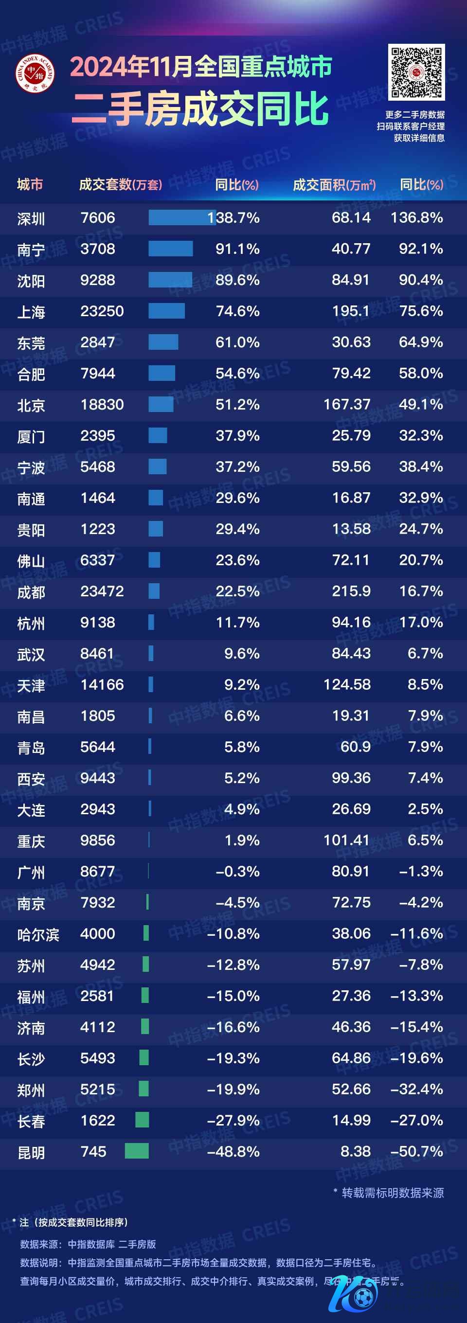 凭证中国房地产指数系统百城价钱指数,2024年11月,百城二手住宅均价环比着落0.57%,跌幅较上月收窄0.03个百分点;同比着落7.29%。11月,十大城市二手住宅均价环比着落0.17%,跌幅较上月收窄0.16个百分点;同比着落7.16%,跌幅较上月收窄0.36个百分点。