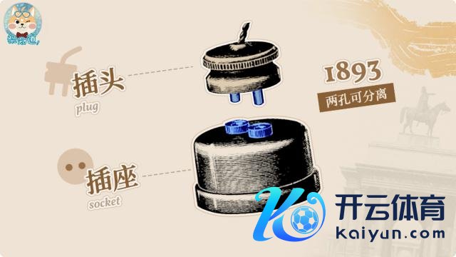 到了 1893 年前后,英国就依然出现了两孔插座,其中插头的两个脚是较短的圆柱体,插头和插座不错分离开;