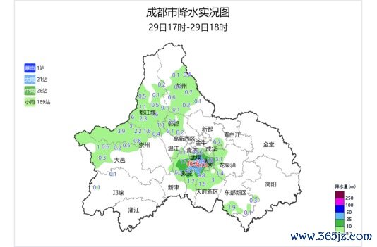 17时到18时,降雨有所加强。在成信大航空港校区,小时降雨量达到了52.2毫米。此外,双流西航港常乐、高新桂溪益州、双流黄甲双华、高新南石羊、高新区桂溪公园、高新桂溪永安等站点,小时雨量王人朝上了40毫米。在高新区和武侯区,还出现了局地的冰雹天气。