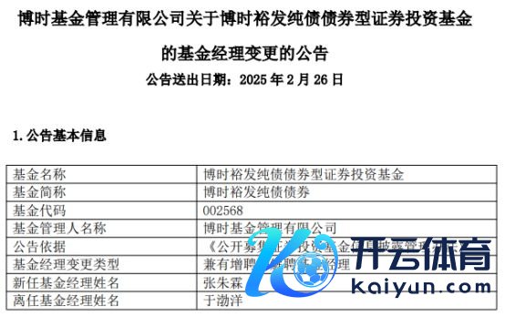 中国经济网北京2月26日讯 当天,博时基金惩处有限公司公告称,博时裕发纯债债券(002568)增聘基金司理张朱霖,于渤洋离任。