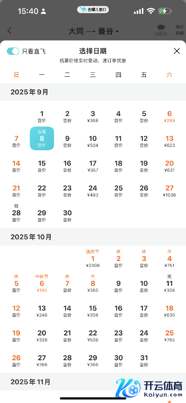 8月30日,红星新闻记者通过出行平台查询后发现,本年9月及10月,从大同云冈国际机场出港的国际航班,如实有多趟显露机票价钱较低,部分时代前去泰国曼谷、韩国首尔的直航航班机票价含税费后也只是需要200多元。