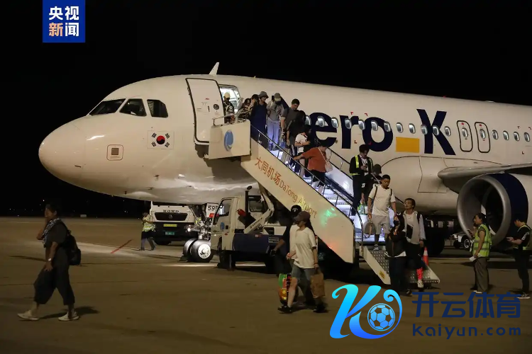 ▲8月6日,韩国可依航空RF8453航班搭载着首批106名游客悠闲降落在云冈国际机场 图据央视新闻