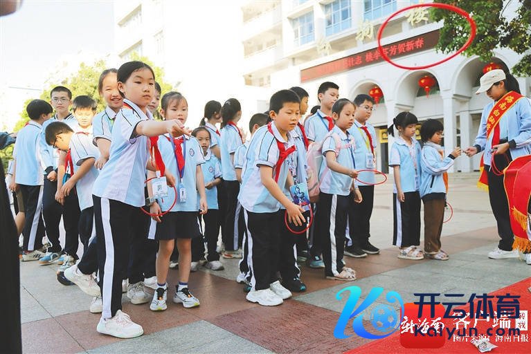 3月1日上昼,海南白驹学校学生返校注册报到,在校园内参与套圈游戏。通信员 颜铭红 摄