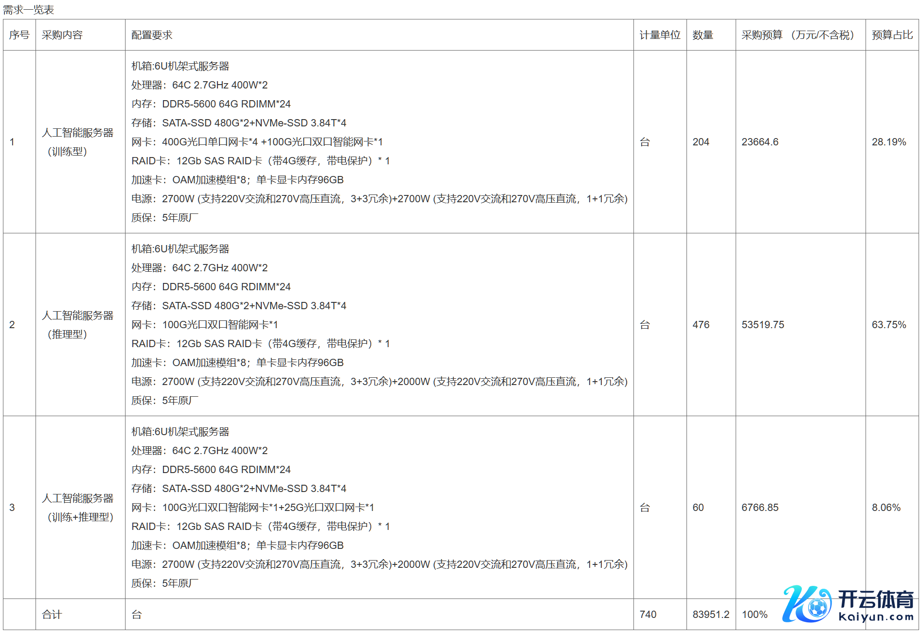 3、东说念主工智能办事器(检会+推理型)60台;